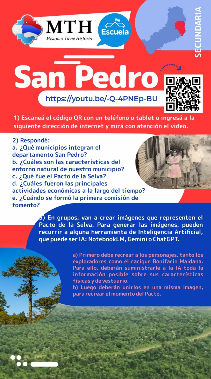 El material cuenta de un video con los principales datos estadísticos, históricos y productivos de San Pedro y una serie de propuestas para trabajar en el aula, tanto a nivel primario como secundario.